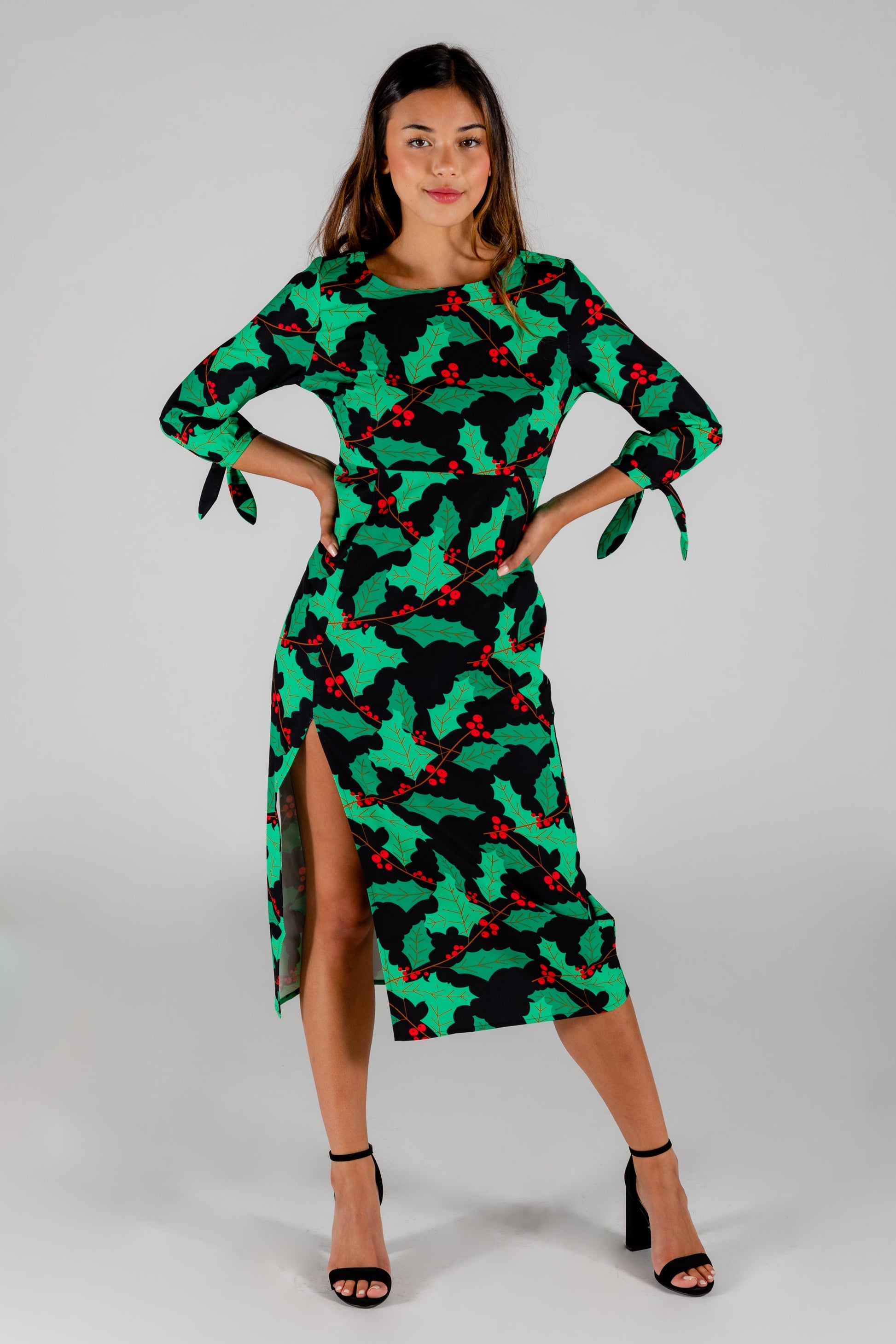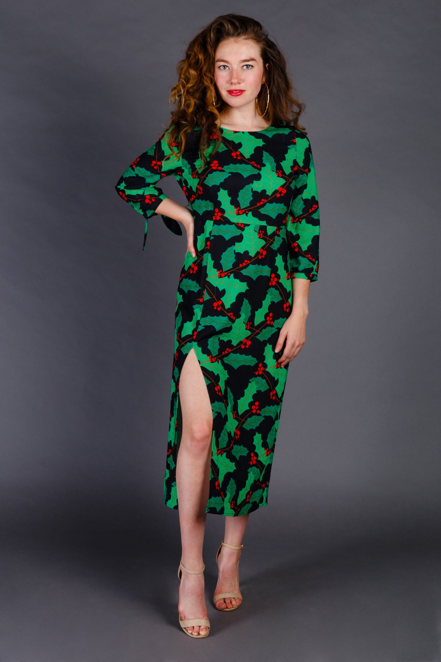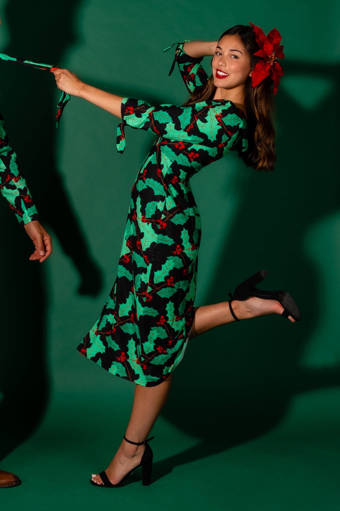 The Deck Yourselves | Holly Pattern Midi Formal Christmas Dress