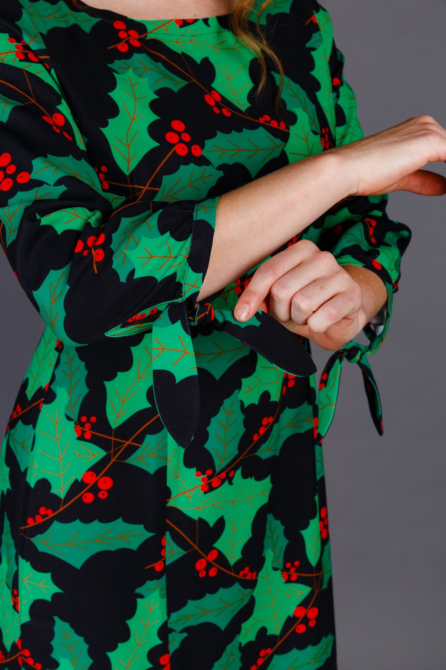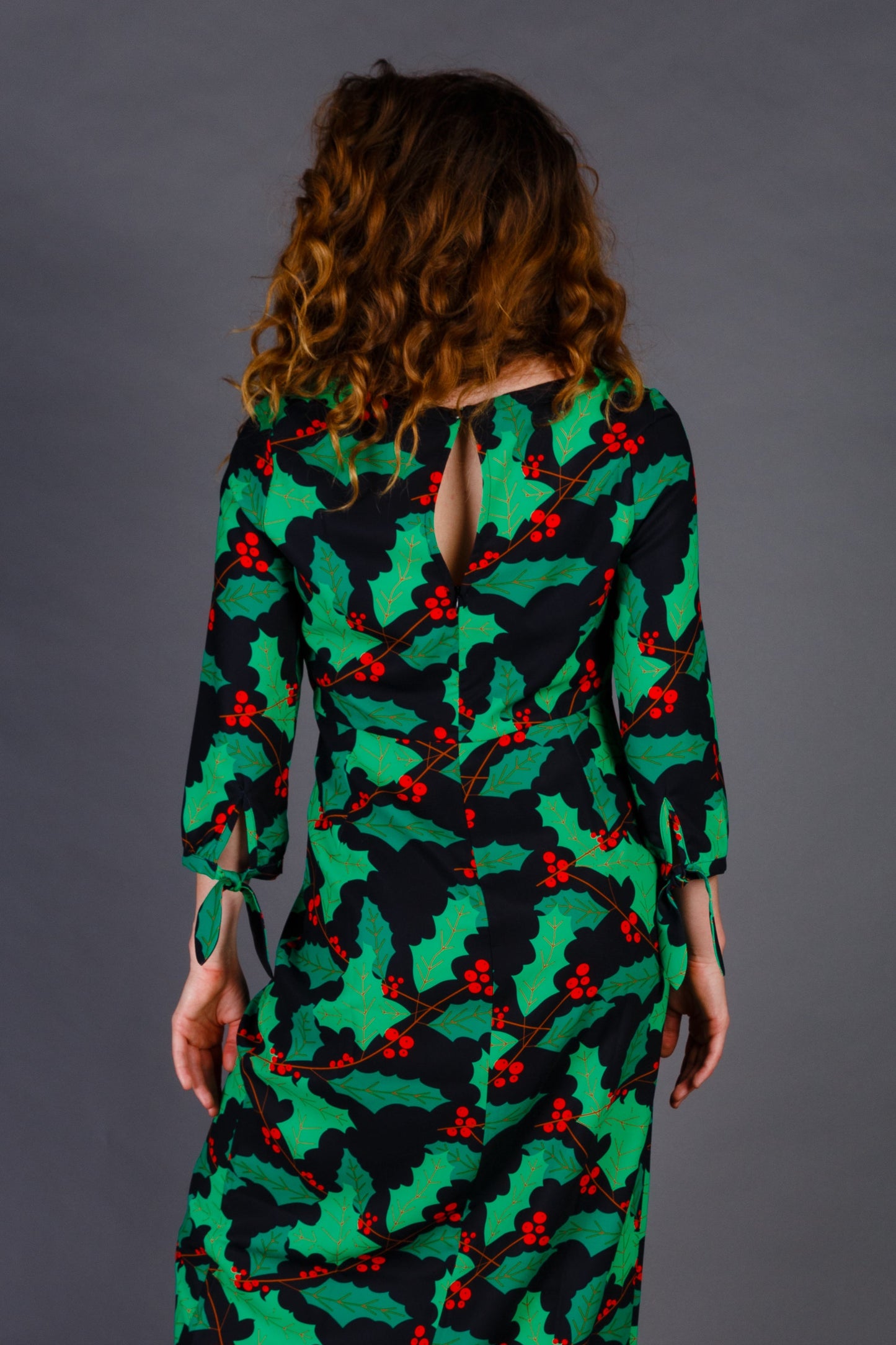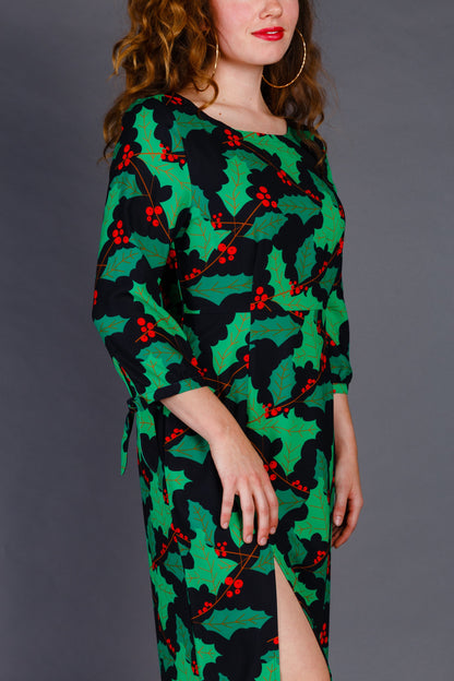 The Deck Yourselves | Holly Pattern Midi Formal Christmas Dress