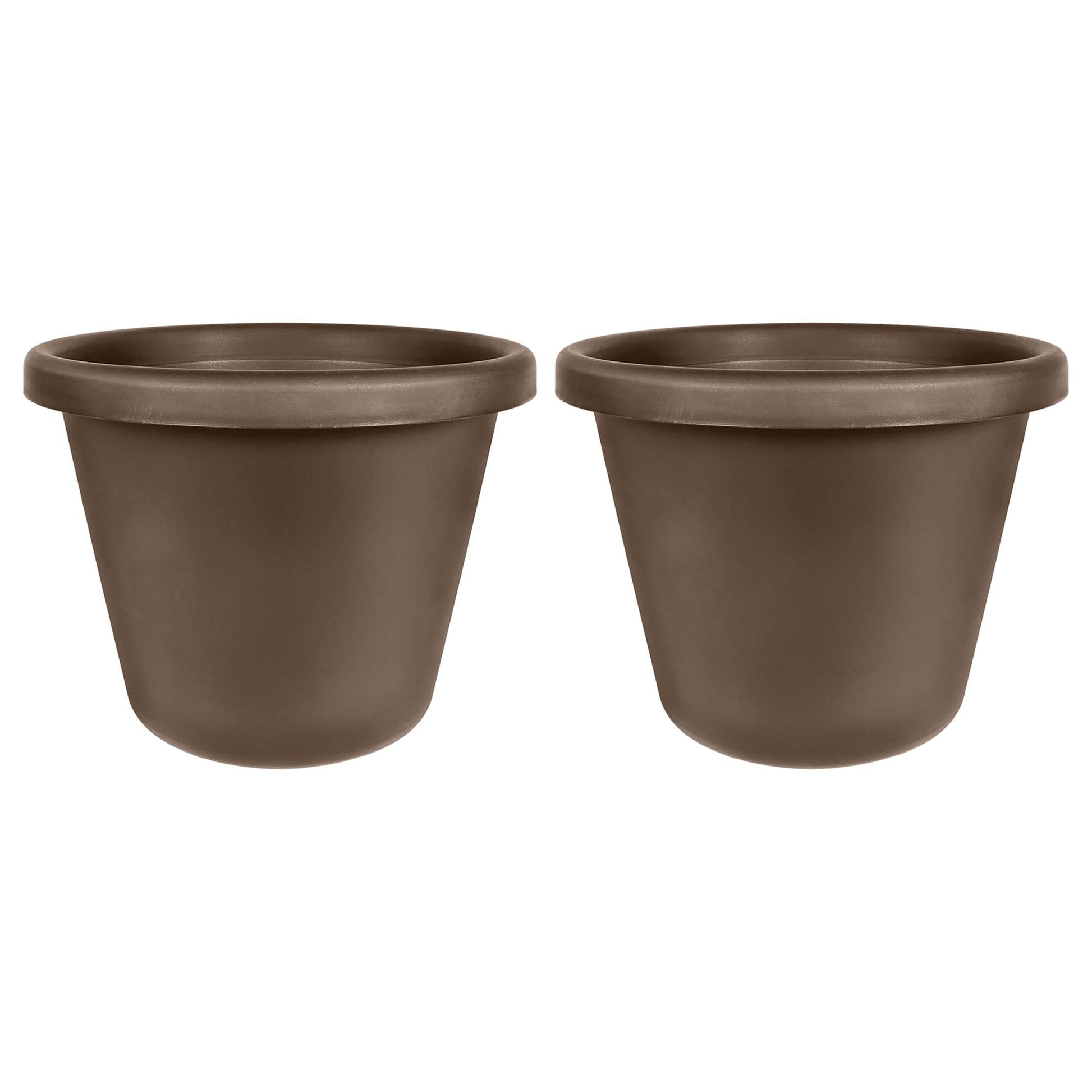 The HC Companies 24 Inch Plastic Classic Flower Pot Planter, Brown (2 Pack)