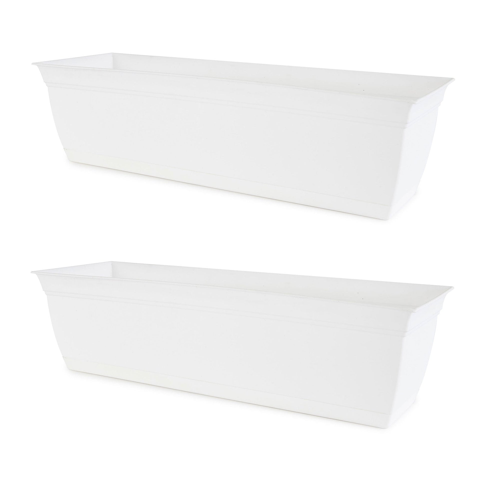 The HC Companies 24 Inch Window Flower Box with Removable Saucer, White (2 Pack)