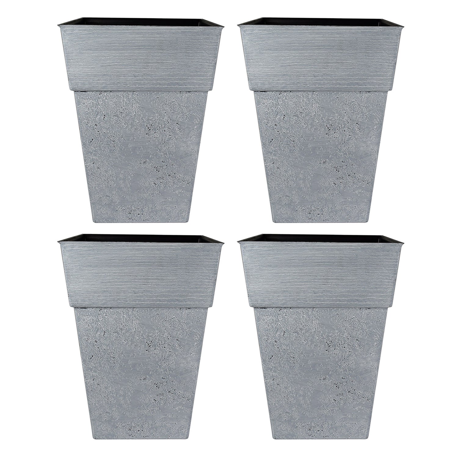 The HC Companies Avino 16-Inch Square Resin Planter Pot, Oxidized Black (4 Pack)