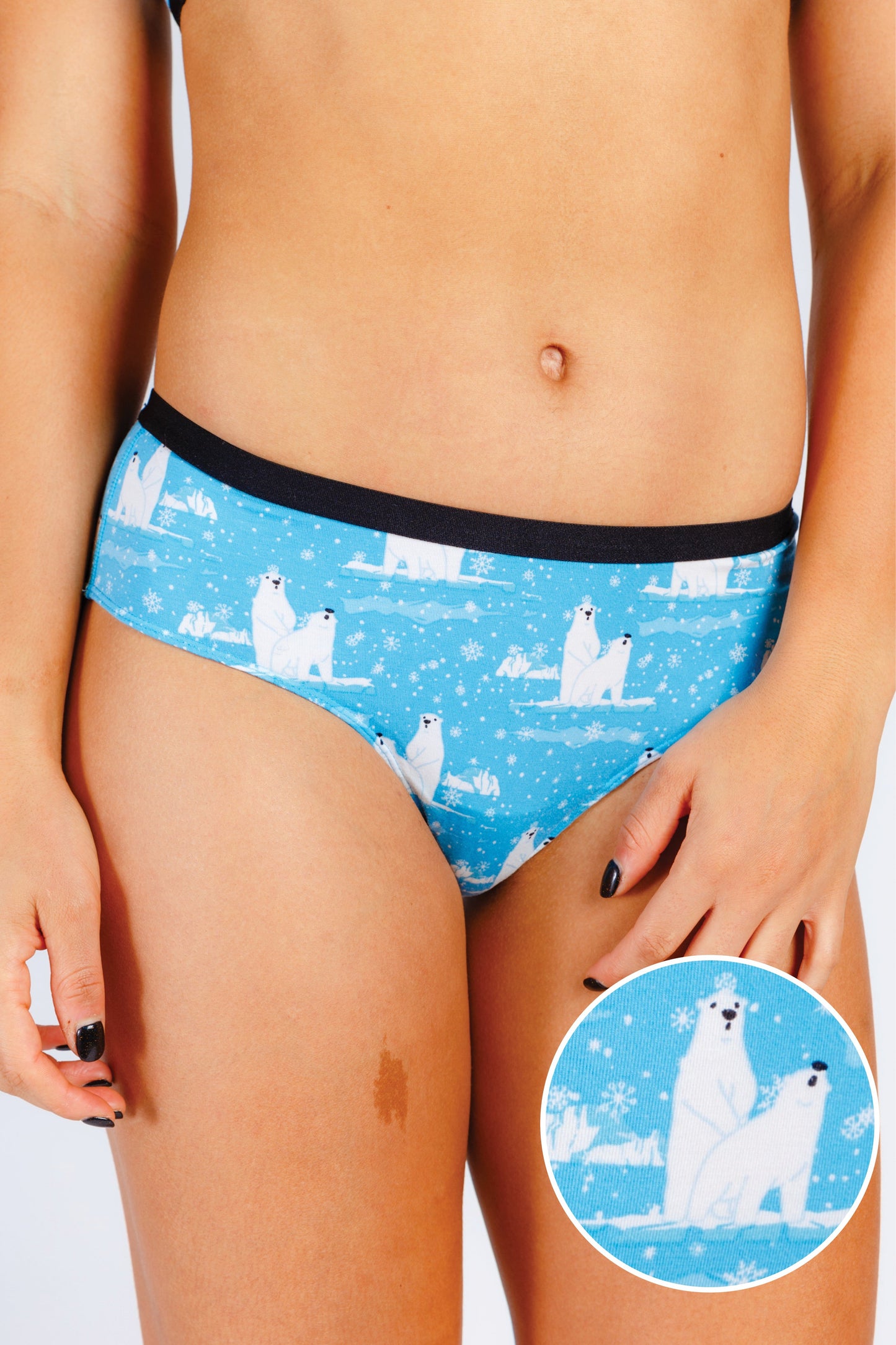 Time for a history lesson. You probably knew that the deliciously sugary and addictive beverage, Coca Cola, used to be made with none other than Charlie Sheen's favorite nose candy. But alas, it was discovered that this should not be an additive in a legal beverage. So, chemists had to find a new way to create the popular beverage. We will spare you the precisely scientific details, but now you know that these adorable polar bears on these baby blue cheeky undies are busy making coke.