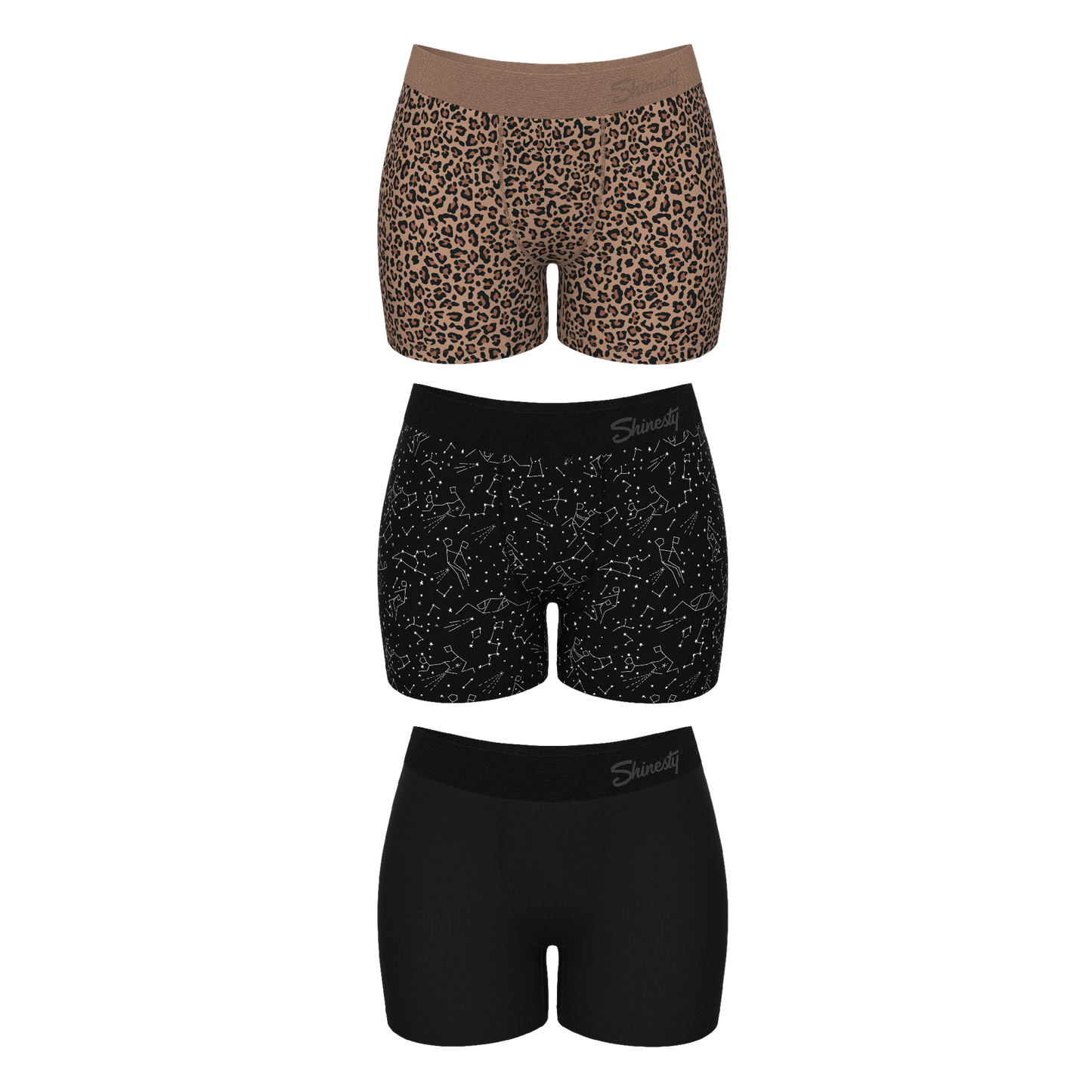 Thick waistband, longer legs, no ride up, no camel toe, what more could a gal need?! Get The One Of Each 3 pack of women’s boxers. These are perfect under jeans, with a big t-shirt, under a dress, on the dog, basically these can do no wrong.