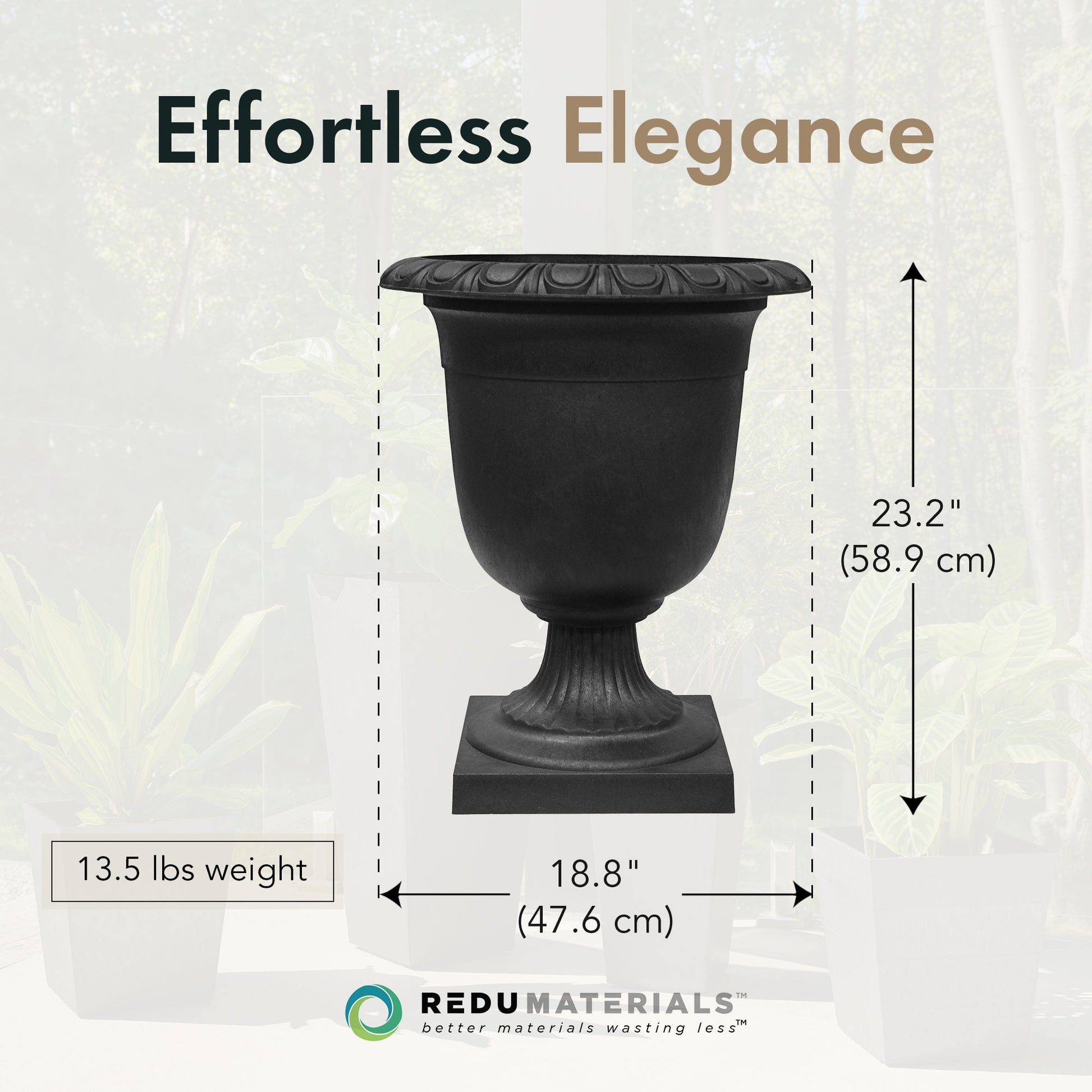 Transform your outdoor or indoor space with the Tierra Verde 19-inch wide and 23-inch tall Self-Watering Crescendo Classic Urn Planter in Black. This durable, eco-friendly planter is made from high-grade, recycled materials, ensuring it can withstand the elements all year round. The classic urn design provides a touch of elegance, making it a beautiful addition to your patio, garden, porch, or entryway.