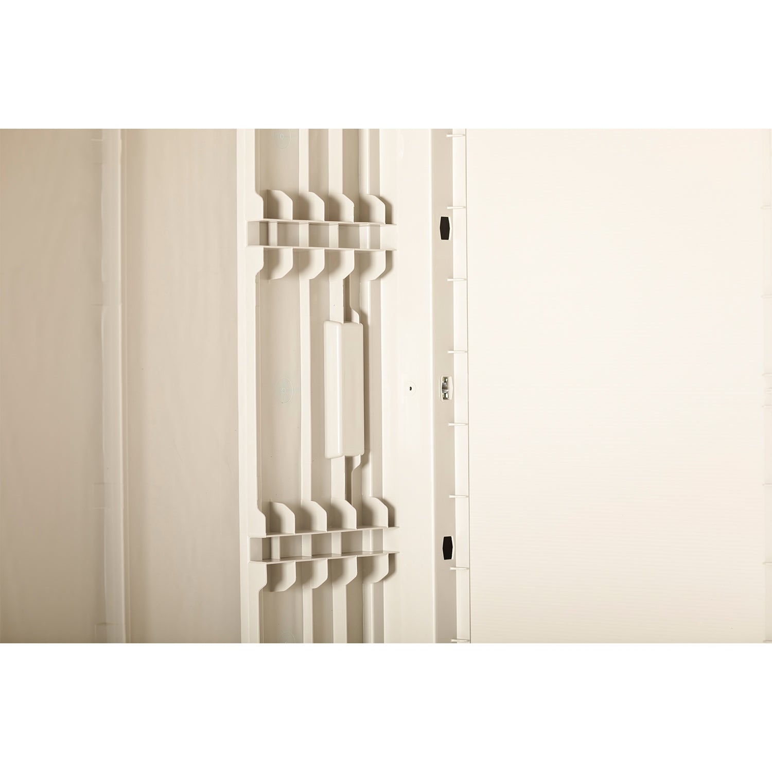 Ideal for smaller spaces such as patios, porches, and balconies, this versatile Vertical Storage Shed offers countless organizational opportunities. Made of Rugged high-density polyethylene construction, this shed can take on the elements and stay standing. In fact, the Toomax storage shed won't chip, crack or peel. Featuring a grid floor to help keep handheld tools in place. To keep all your belongings safe, this shed also features a lockable door. The best part is that building this shed is super simple and will not take you many hours, it will arrive in easy-to-assemble interlocking resin panels.