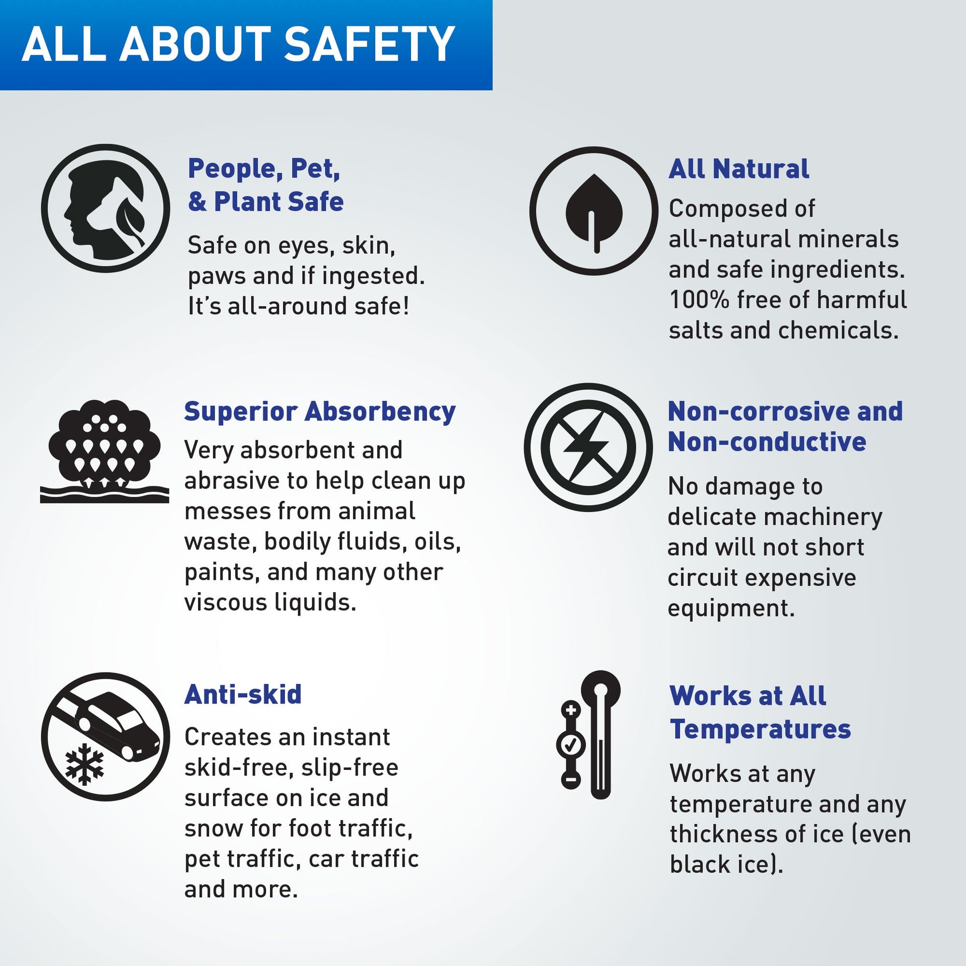 - All-natural crystals absorb into the liquid layer of ice and bury themselves into the ice sheet, leaving a grainy, non-slip surface