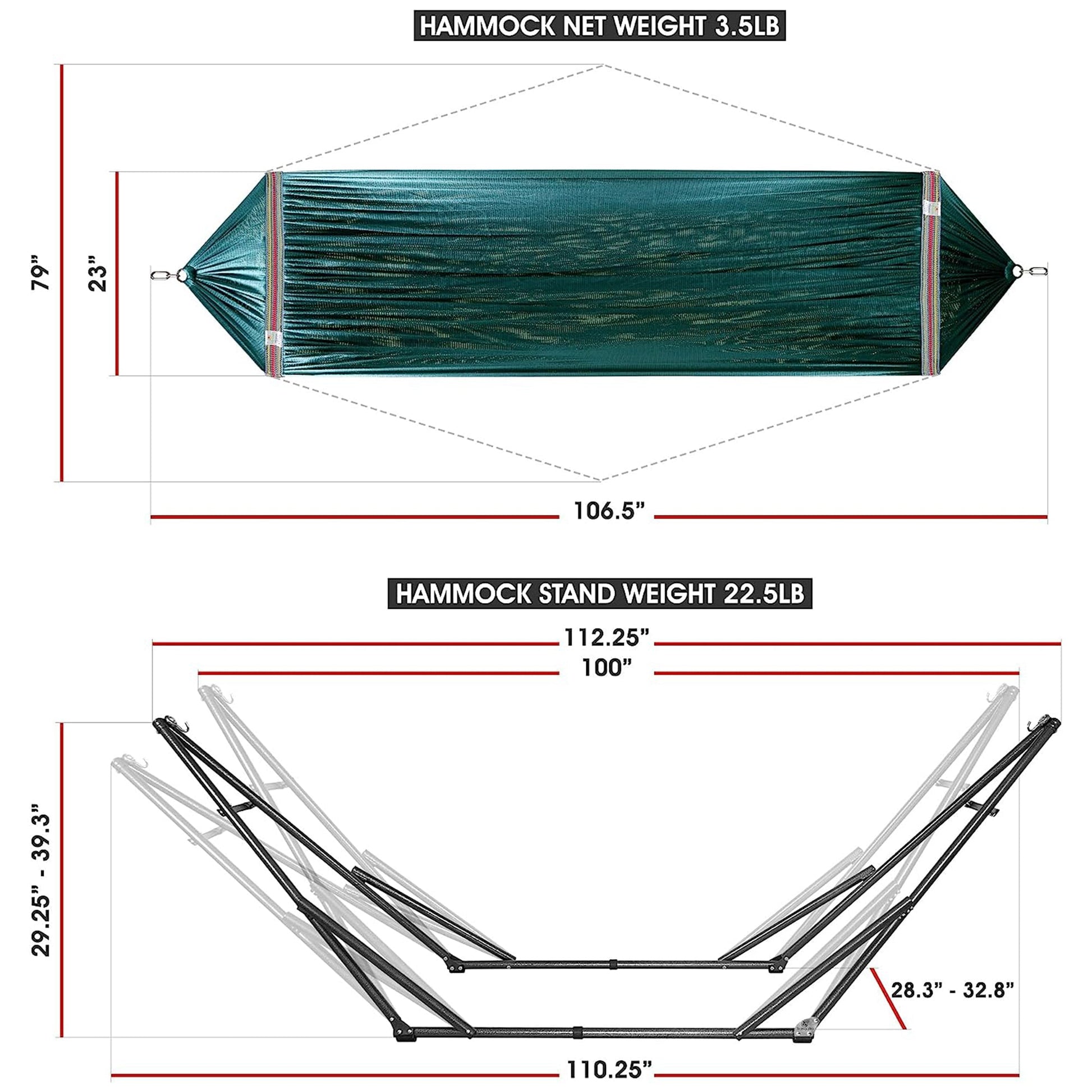 - Includes a carry bag to easily store and transport the hammock stand and net with an effortless set-up process