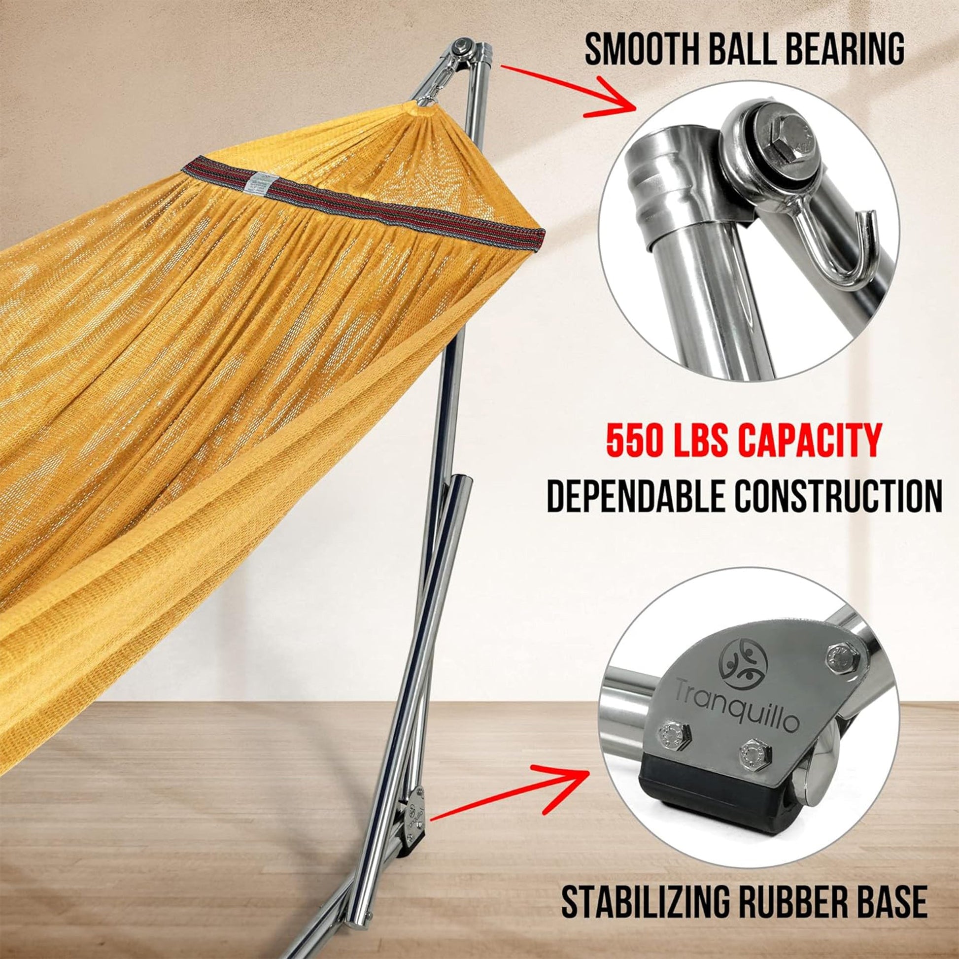 Tranquillo Universal 106" Double Hammock with Adjustable Stand and Bag, Yellow