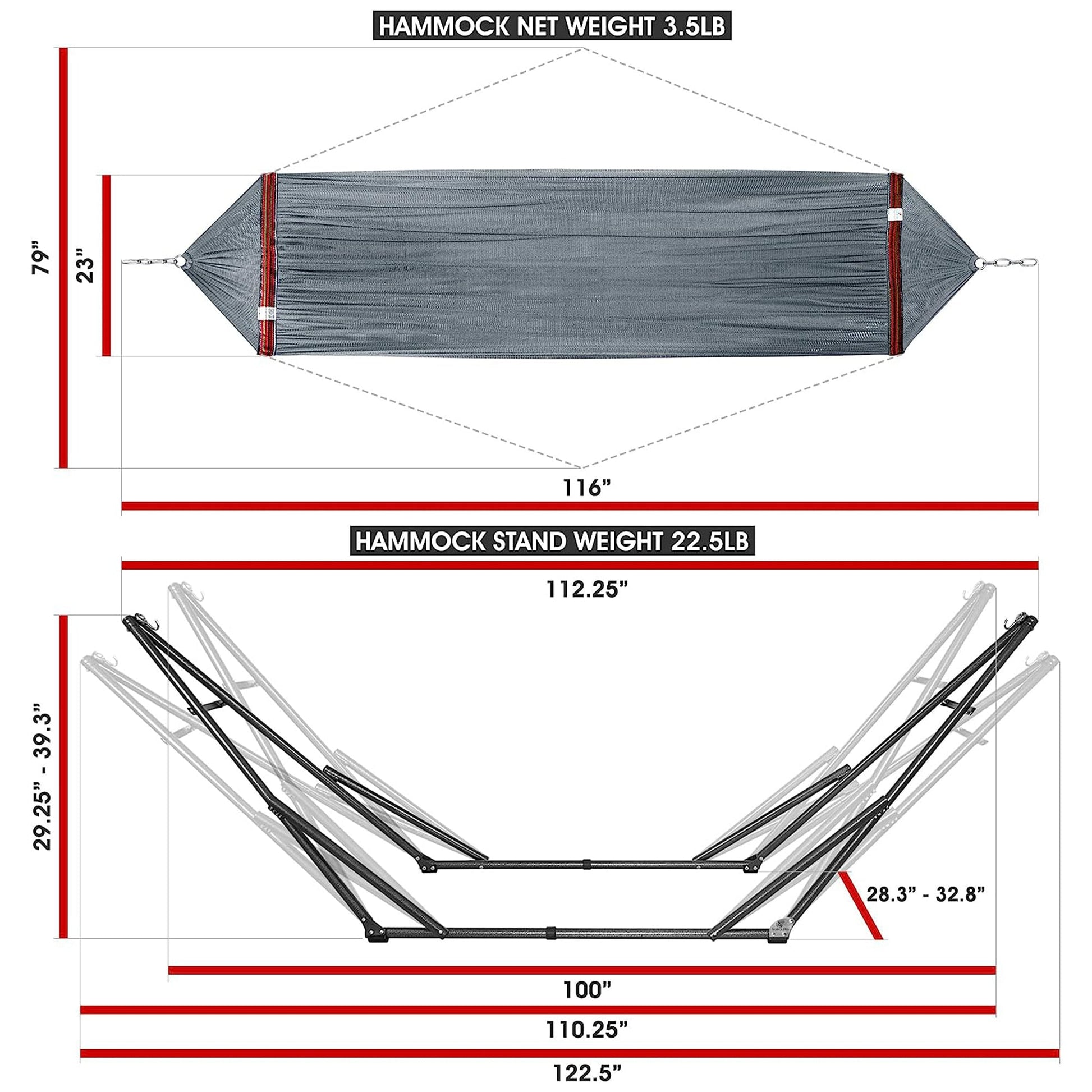 - Hammock length: 116 inches
