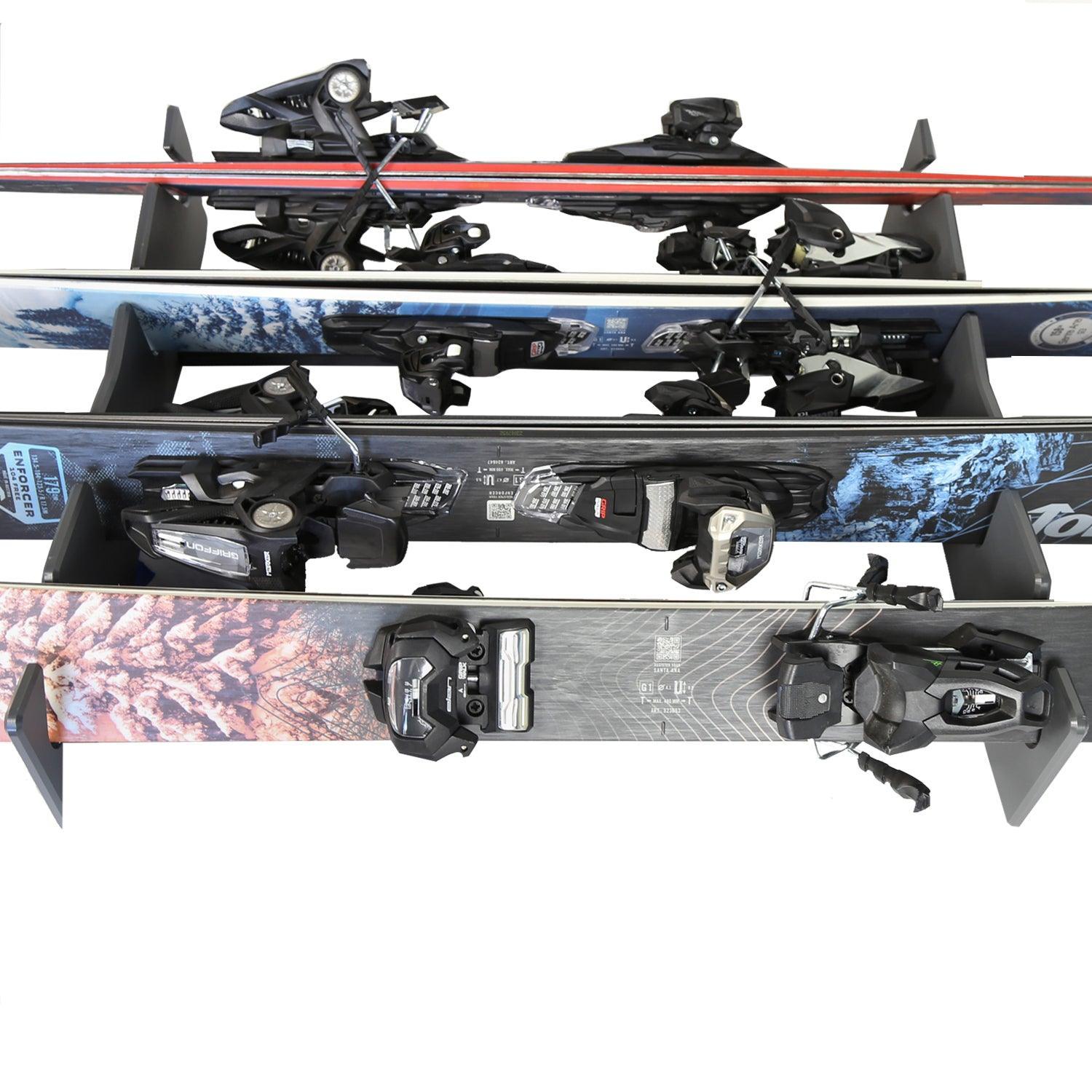 The TRAPSKI LowPro 4 L rack in Charcoal, holds 4 pairs of skis & poles inside a Cargo Box.