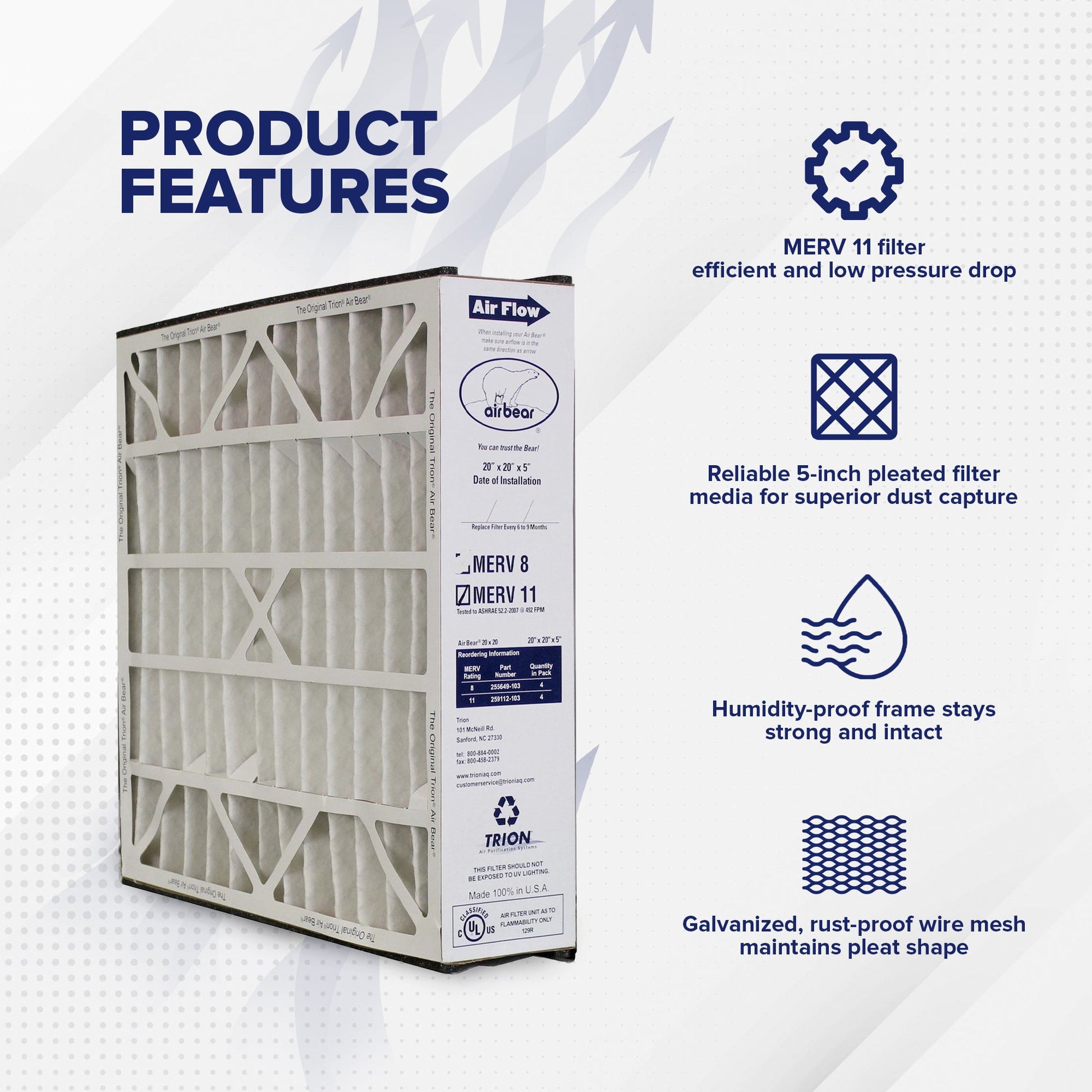 Trion 259112-103 Air Bear 20.5 x 19.75 x 4.78 Inch MERV 11 Air Filter, 4 Pack