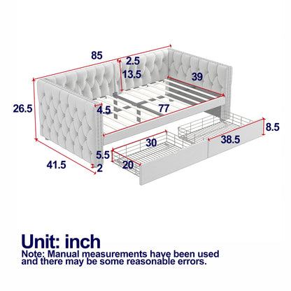 Twin Size Daybed with Drawers Upholstered Tufted Sofa Bed, with Button on Back and Copper Nail on Waved Shape Arms, velvet(79.5"x41.5"x26.5")