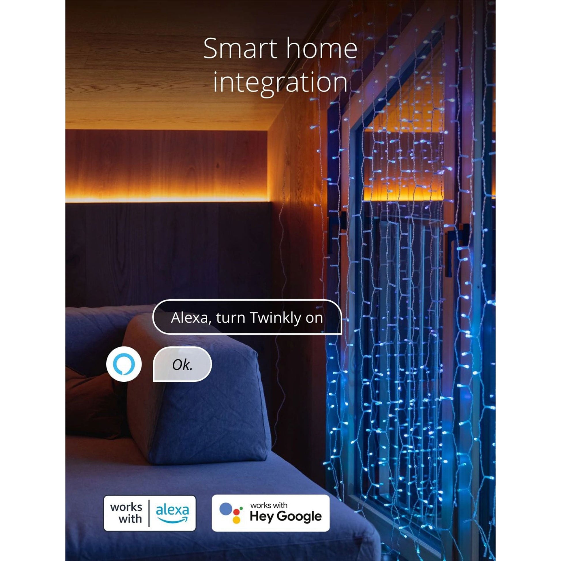 - Twinkly mobile smartphone app allows you to easily control the lights and produce 16 million color variations for a custom look with Wi-Fi and Bluetooth