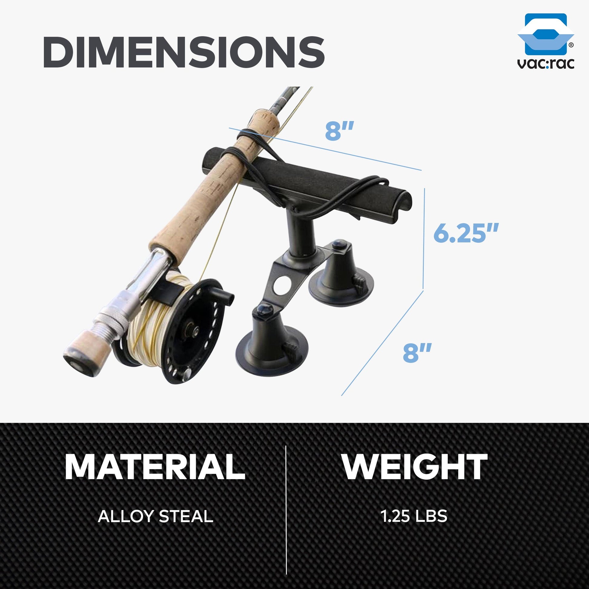 Vac Rac Quad Rack Fly Rod Mount Carrier Vacuum Suction Cup, Holds 4 Rods, Black