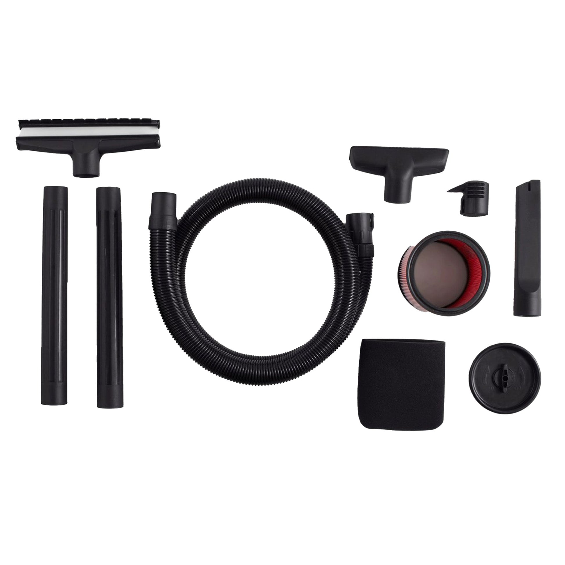 You can also effortlessly convert this vacuum into a blower, transforming your cleanup routine with a simple adjustment. The high-efficiency fine dust filter guarantees that even the tiniest particles are captured during operation, maintaining a clean and healthy environment. Built to endure, this vacuum features a rugged polypropylene tank, an extra-large drain port for easy disposal, and a large dust-sealed on-off switch for durability. The comprehensive accessory pack, including a premium hose, extension wands, utility nozzle, crevice tool, floor nozzle, air and noise diffuser, and fine dust cartridge filter, ensure you have the right tools for any cleaning task.