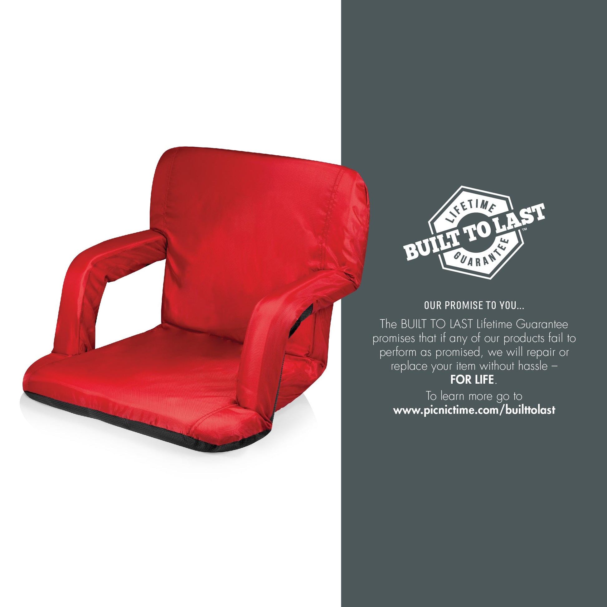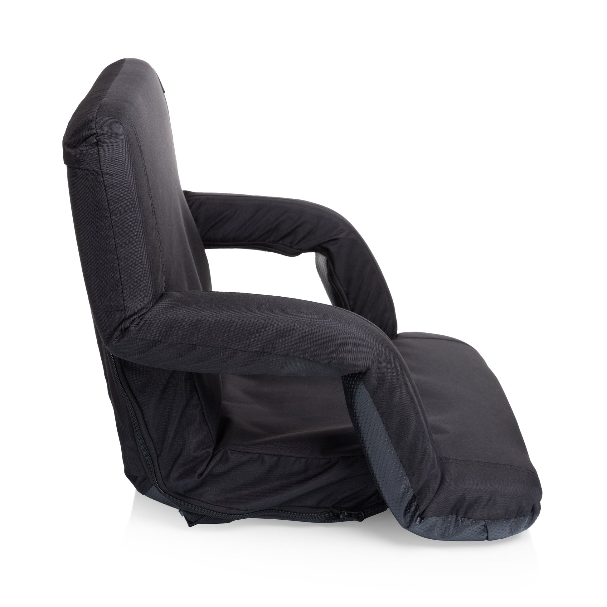 With six backrest positions, padded armrests, and high-density foam padding, the Ventura Reclining Stadium Seat with Back Support is a deluxe yet lightweight and highly-portable folding stadium seat. The lightweight steel frame, sturdy polyester canvas, water-resistant bottom, large exterior zipper pocket, and adjustable shoulder straps make this your go-to travel sports chair! This stadium seat is perfect for spectating in comfort, whether you're watching the pros or your kids (future pros), for lounging on the beach in exquisite comfort, for enjoying the great outdoors on a reclining camp ground chair, and more. This reclining chair with no legs makes the world your cozy seat - your buns and back will thank you every time you ease into the high-density foam comfort of the Ventura. Adjustable backpack straps make this bleacher seat with back totally portable, and you can even invert the armrests to create up to 20" of added width to the seat. Explore flat-folding chair's six backrest positions to find the perfect groove for you. Whether you're watching the game or gaming with your buddies, whenever you need a flexible seat on the go, the Ventura Reclining Stadium Seat elevates kicking back.
