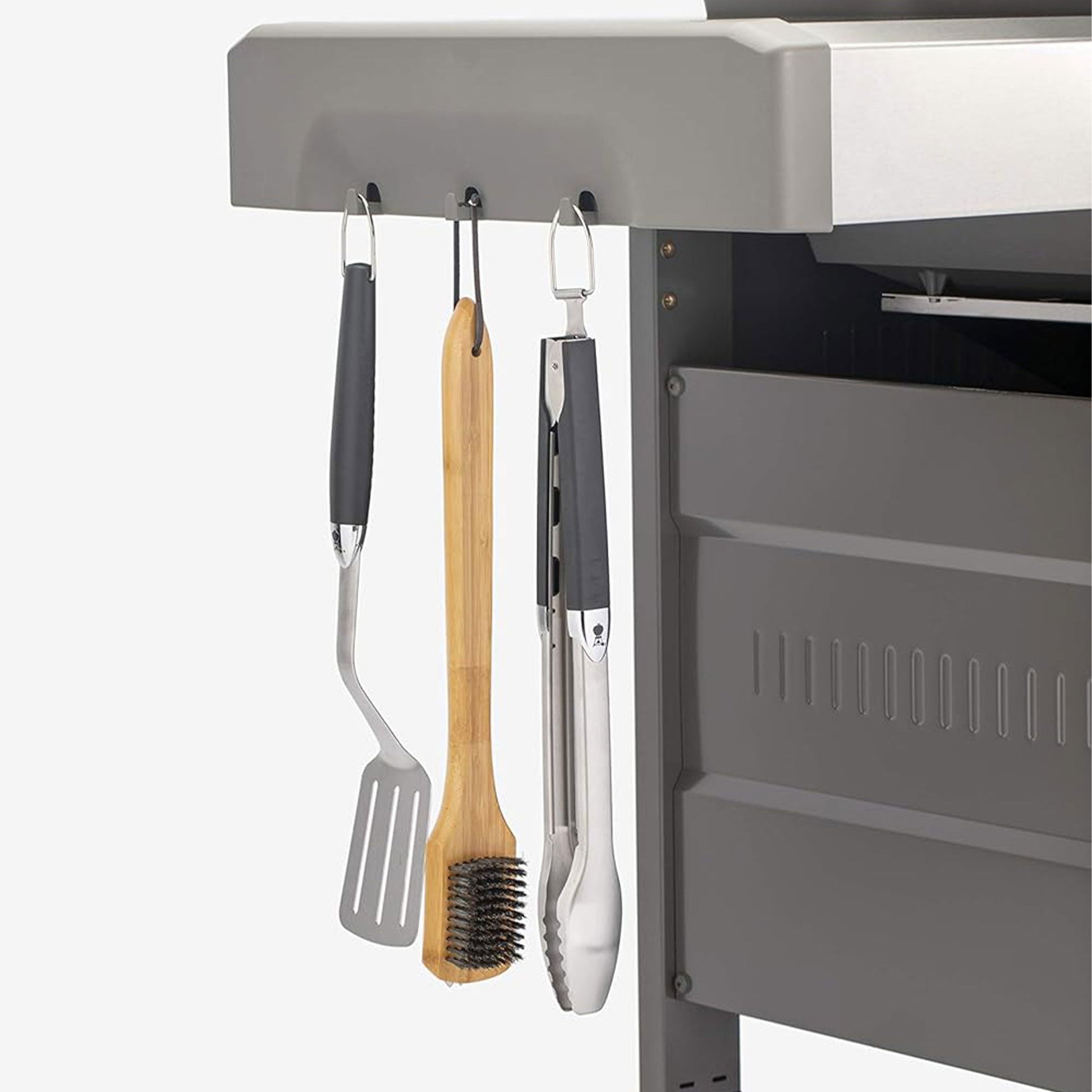 - Integrated hooks for hanging essential grilling tools, providing easy access and organization