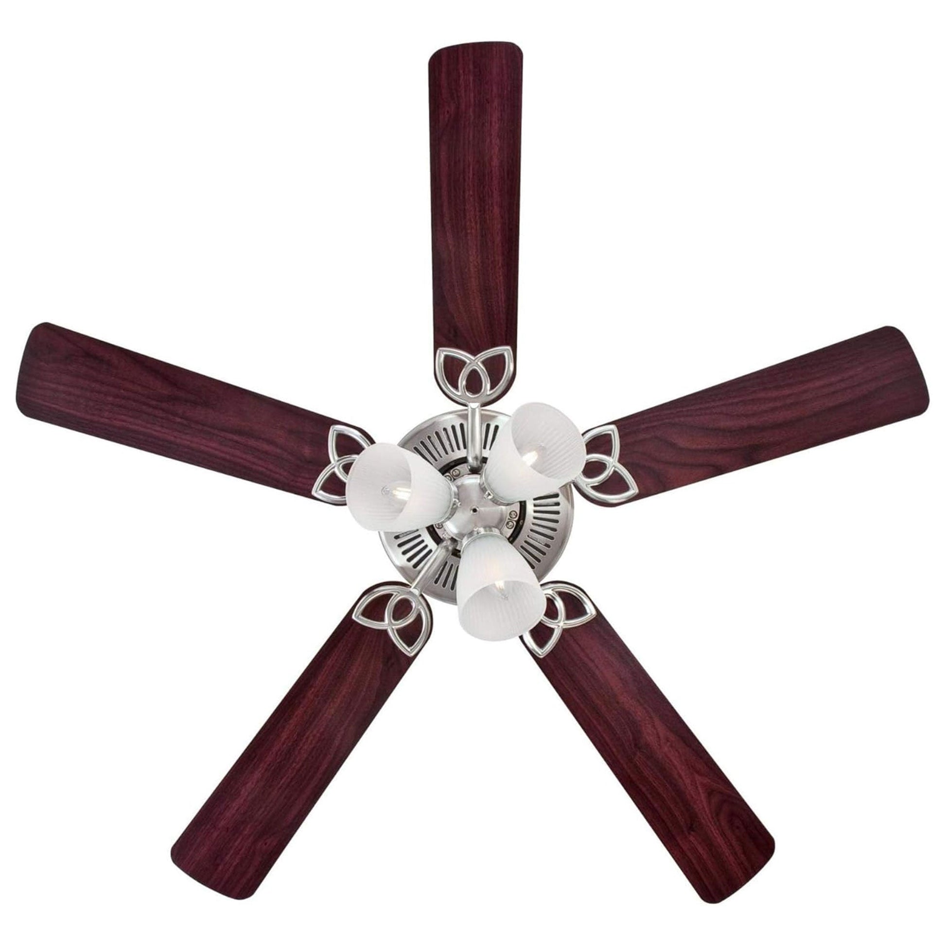 - 52-inch ceiling fan features a sleek brushed nickel finish, perfect for adding vintage charm to any room while offering modern functionality and style