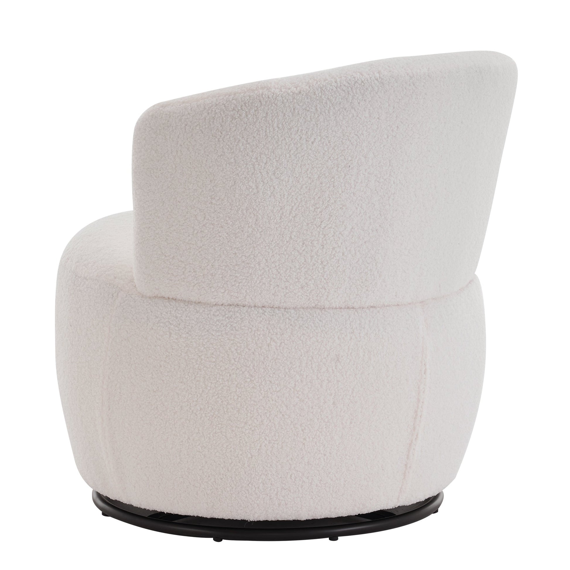 White Plush Swivel Accent Chair - Contemporary Round Armchair with 360 Rotation and Metal Base for Living Room Elegance
