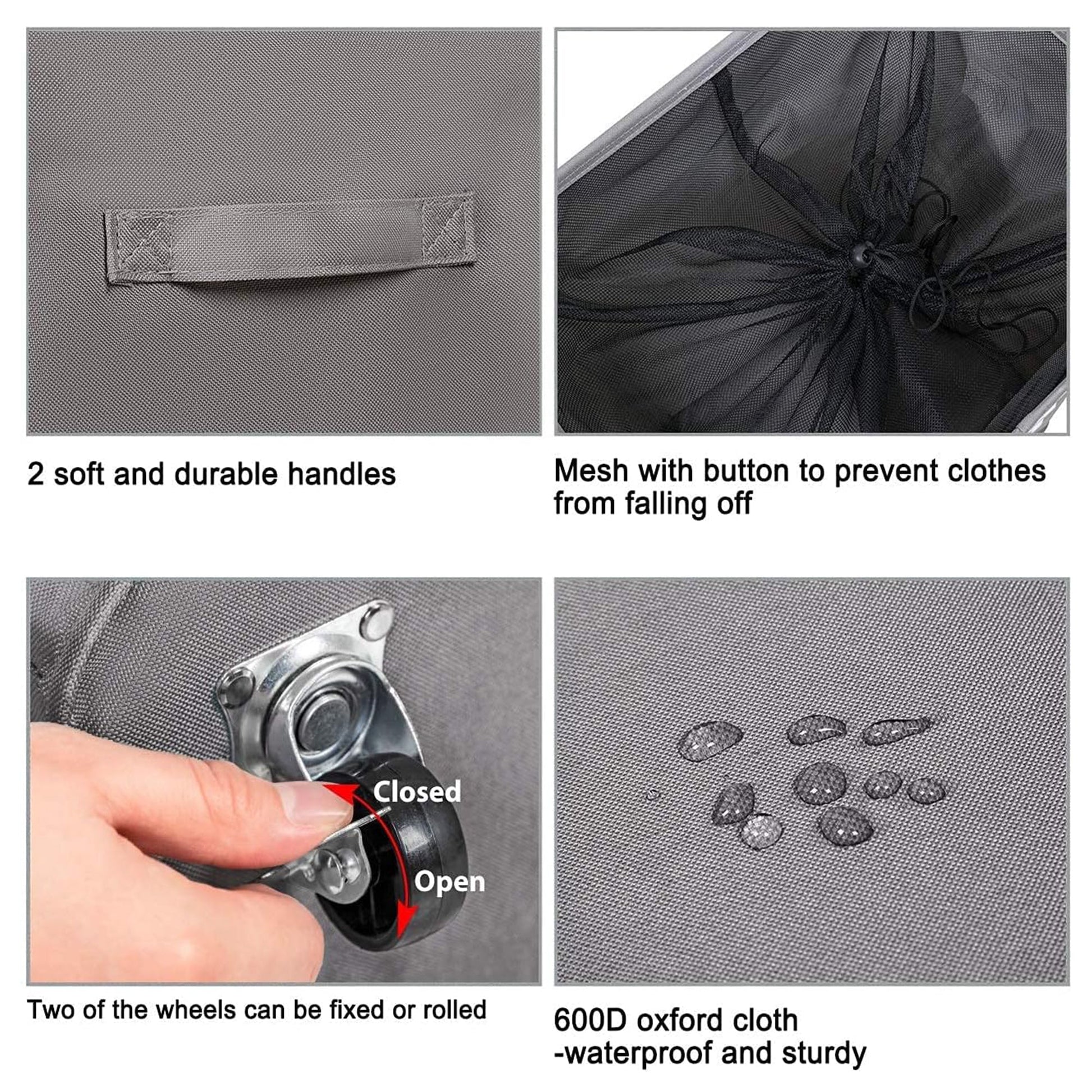 WOWLIVE 90L Foldable Rectangular Deluxe Laundry Service Rolling Basket, Gray