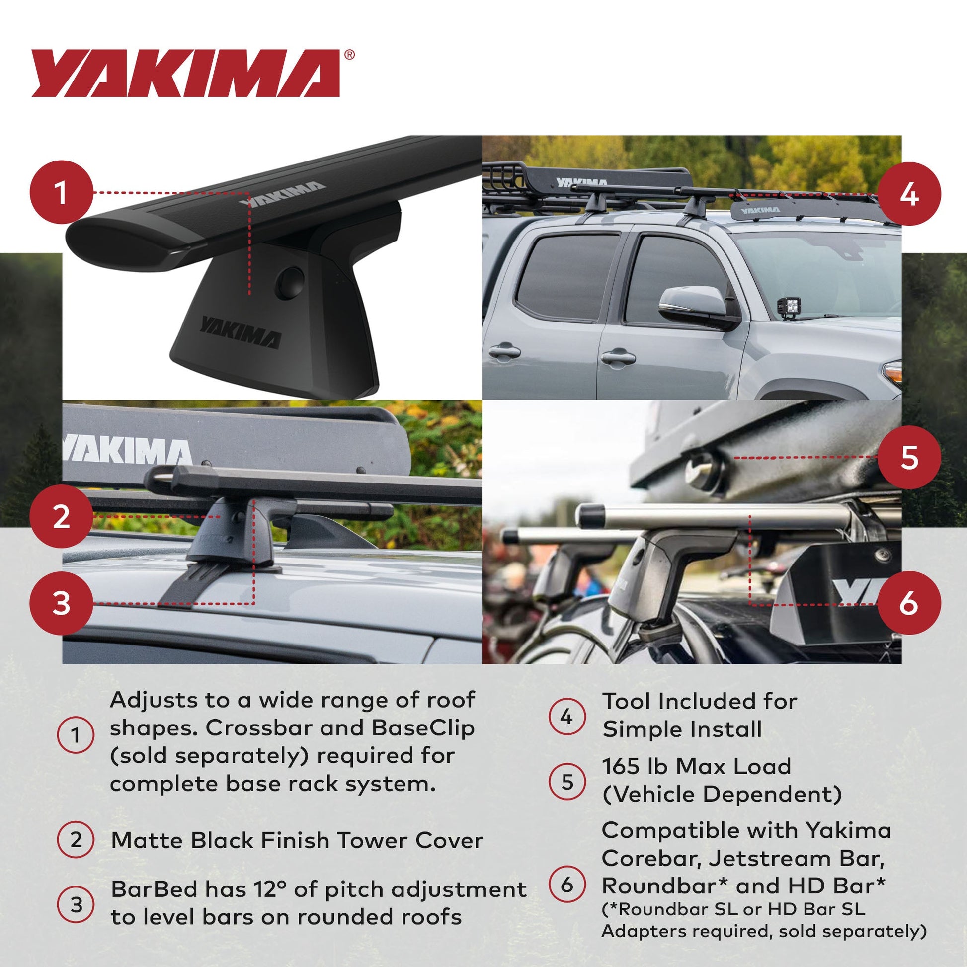 - Compatible with Yakima JetStream, HD Bar, CoreBar, and RoundBar crossbars, these towers offer adaptability and flexibility, enabling you to tailor your rooftop setup to your specific needs