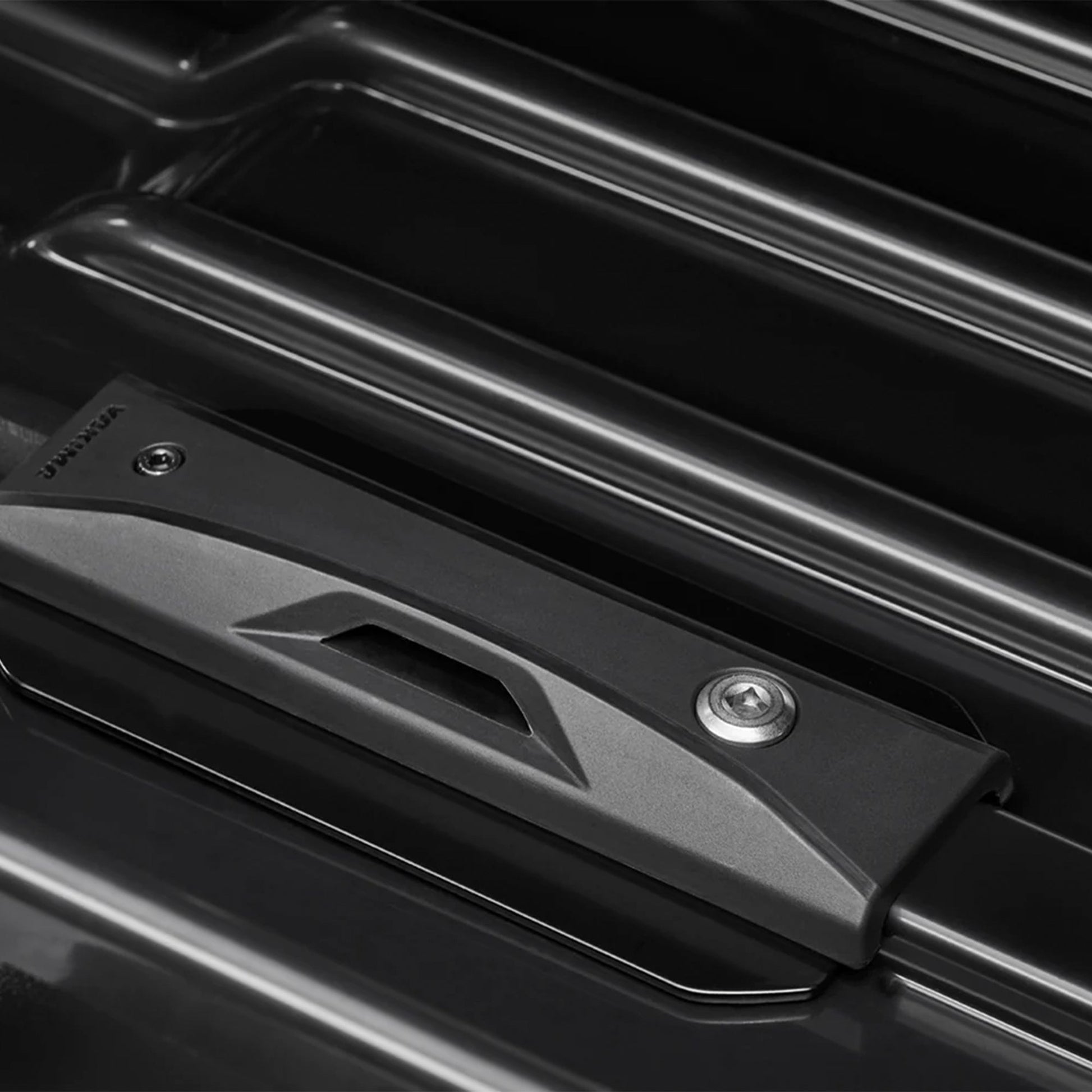 The all-new textured surface adds a unique touch to your vehicle, while the internal usable space provides ample storage for all your gear. With an integrated, easy-grab lid handle, this travel accessory ensures that your gear is safely locked inside the box. The removable torque tool adds an extra layer of safety and security, while the premium black chrome badging adds a touch of style. In addition to its sleek design, the CBX 16 offers optimized hatch clearance for better vehicle fit. The universal mounting hardware is compatible with all Yakima StreamLine™ crossbars and factory or aerodynamic crossbars, making it easy to install. This roof rack storage device also has integrated interior tie-down points and SKS Locks included for added security. With 16 cubic feet of cargo space, this cargo box offers plenty of extra storage for all of your travel essentials.