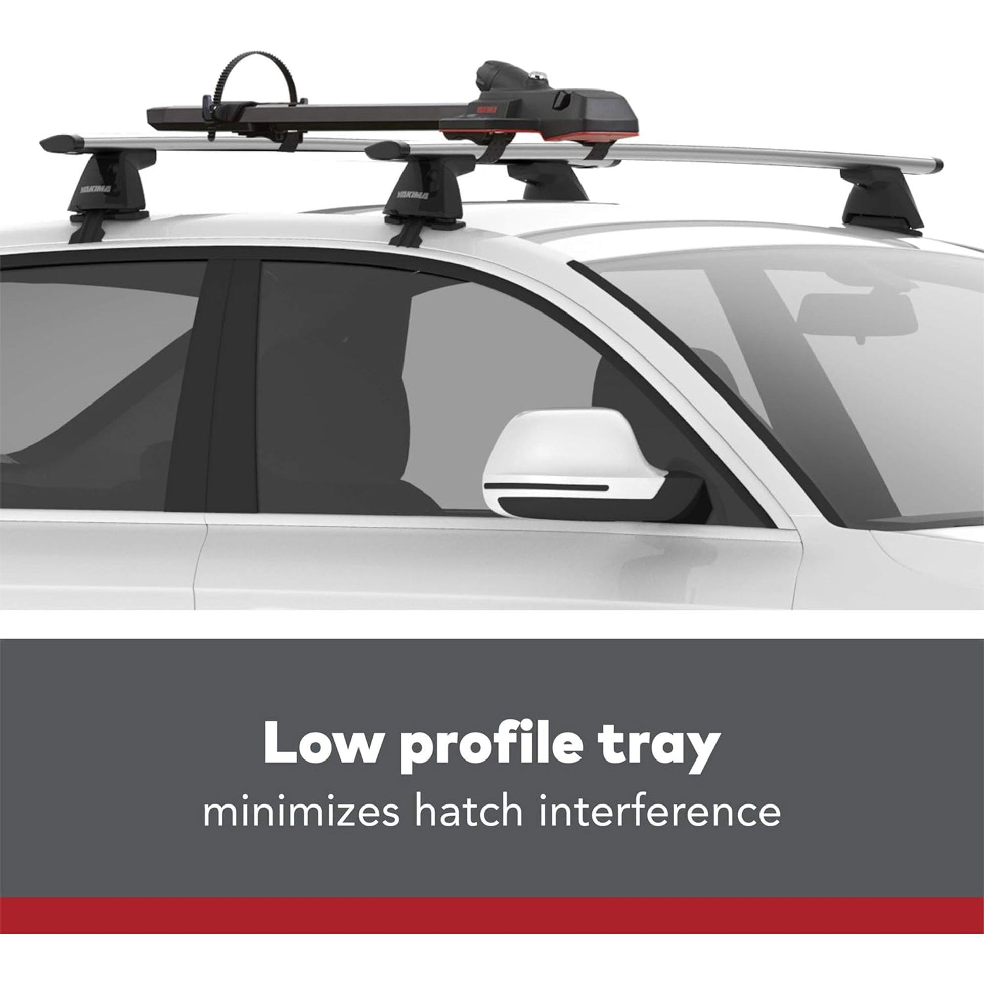 For added safety and protection, pair this bicycle roof rack with SKS Locks (sold separately) to ensure your bike is safe and secure. Easily convert this bike cargo rack to integrate with T-Slot crossbars with the addition of a SmarT-Slot Kit (sold separately). With a sleek, and low profile tray, this bike rack for SUVs minimizes hatch interference and accommodates wheelbases up to 48 inches.
