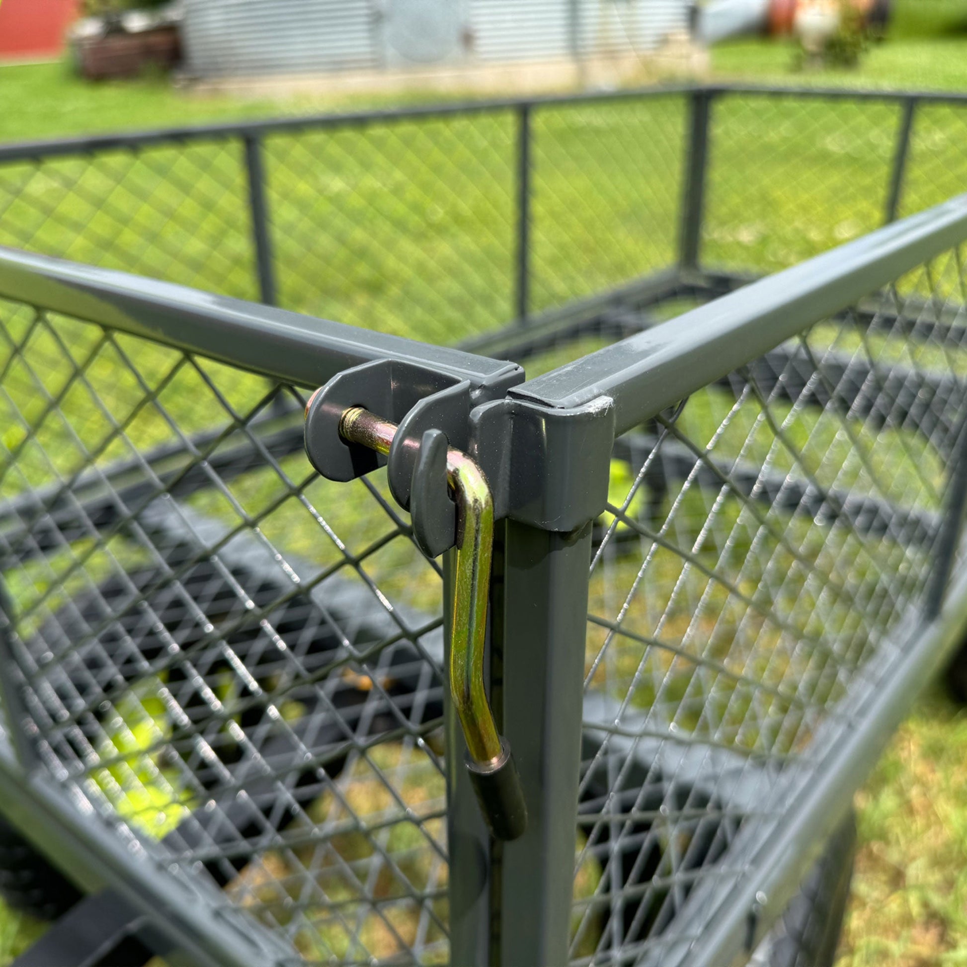 - Heavy-duty steel mesh deck and welded steel rims ensure long-lasting use; 13" pneumatic tires provide stable travel on various terrains