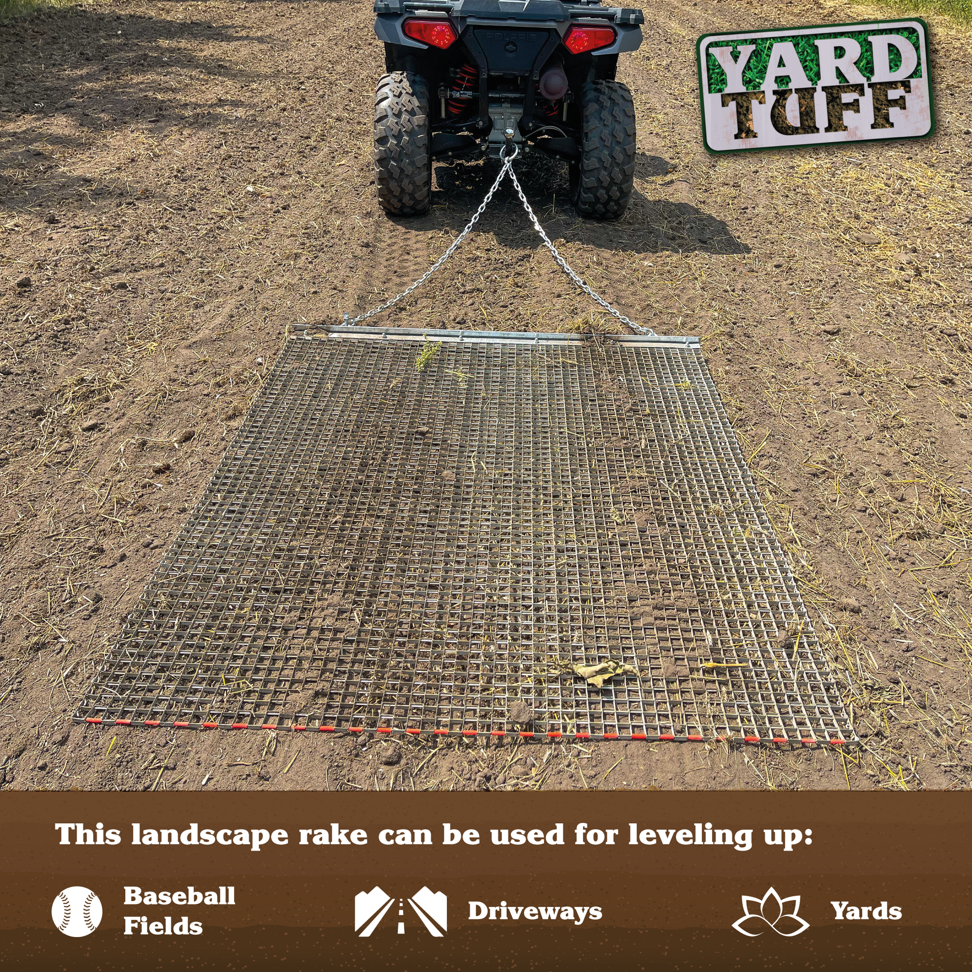 We've designed the drag mat with your convenience in mind. It comes with a tow chain featuring a secure tow ring that easily fits over any 2-inch tow ball. This user-friendly feature allows you to attach the drag mat to almost any ATV, UTV, or utility tractor, making it a versatile tool that adapts to your needs.