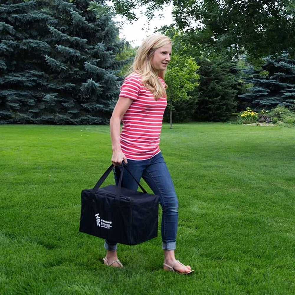 This 2-pack of Giant Tumbling Timbers includes 56 1.5 x 2.5 x 7.5-inch pieces that form 19 stacked rows of tumbling timbers fun! This timber game stands 2.5 feet tall, and depending on your level of experience, can reach a height of 4 feet! This game is great to take outdoors. Perfect for group events, parties, camping, and more.