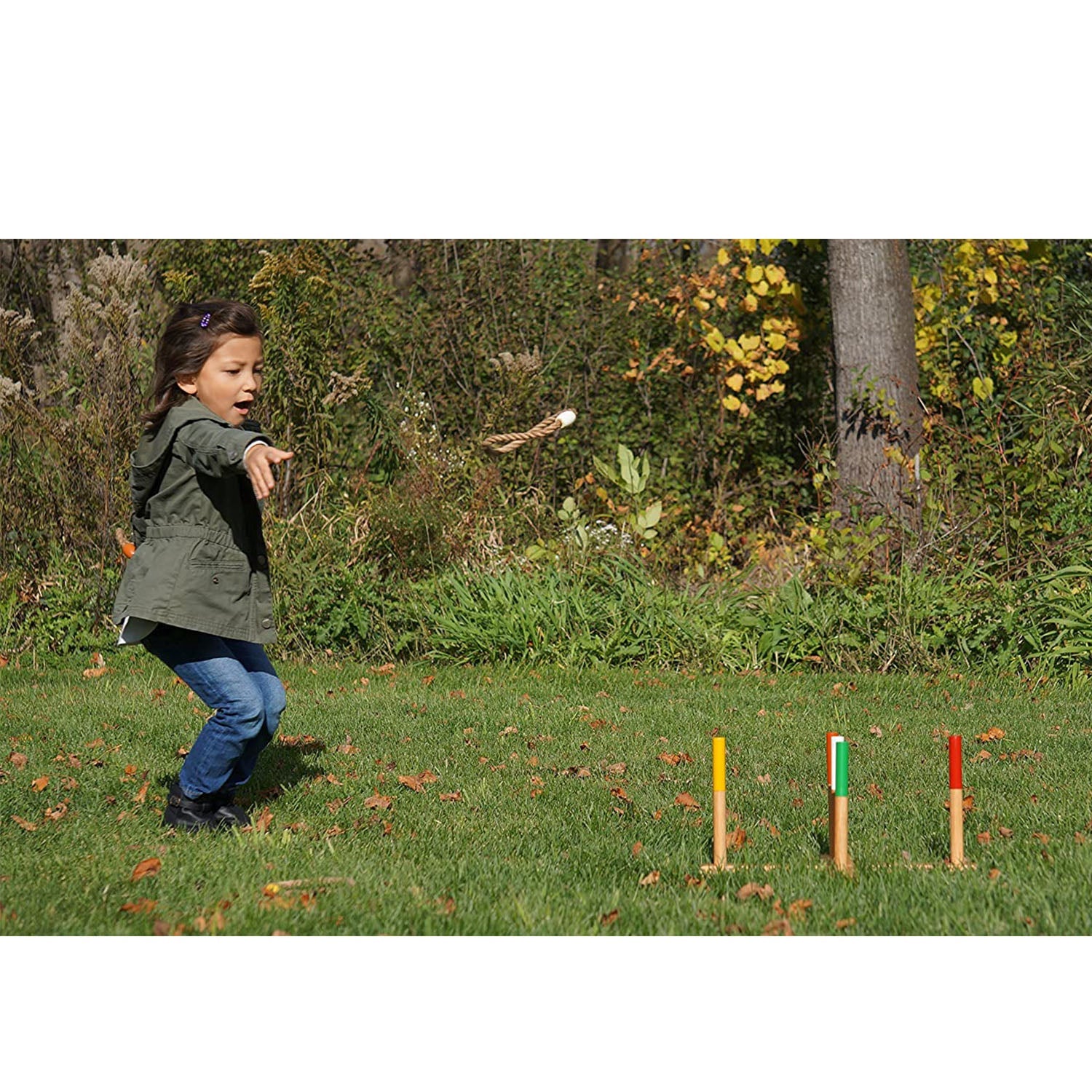 YardGames Portable Outdoor Playground Wooden Ring Toss Game with Carrying Case