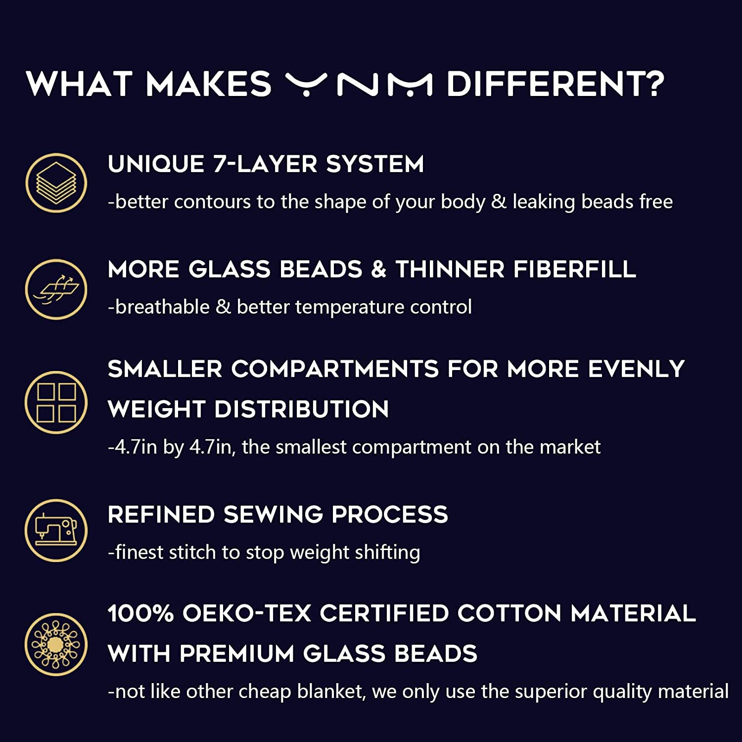 Feel anxiety and the stresses of your day slip away when you cuddle up with the YnM Original Cotton 80 x 87 Inch 25 Pound Glass Bead Weighted Blanket with Duvet Set. This weighted blanket provides a calming sensory experience for ultimate comfort and decompression.